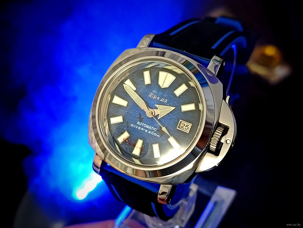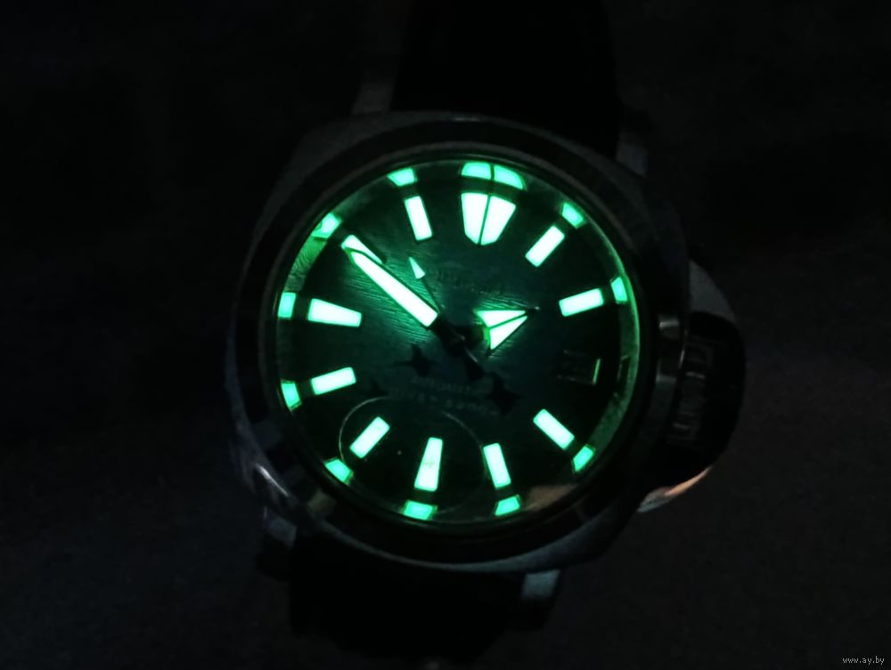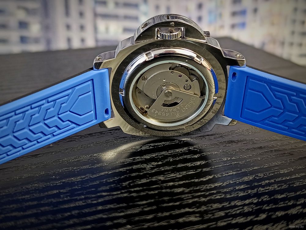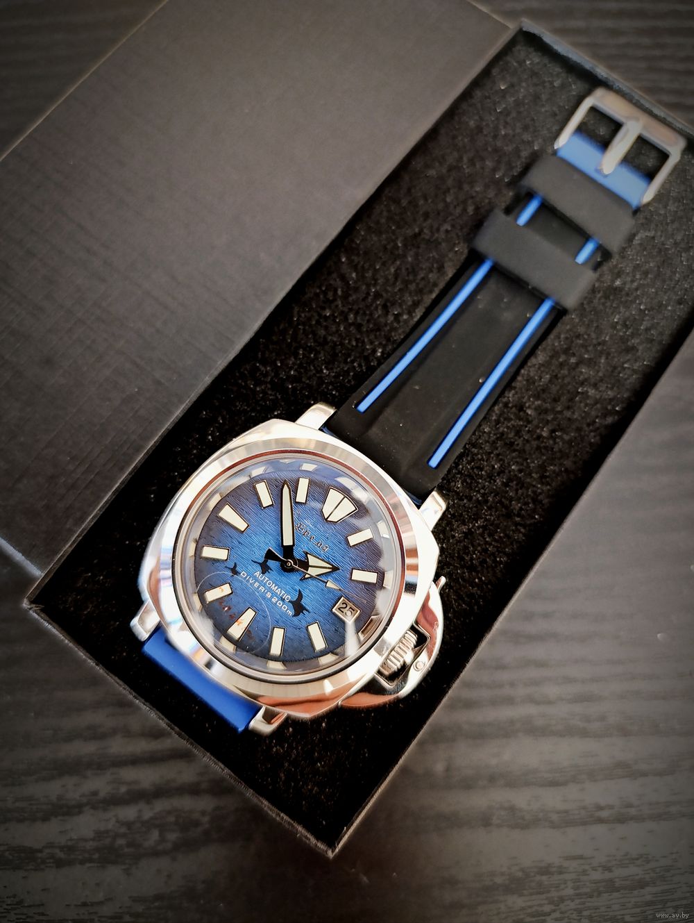 Чёрно-синий гильошированный циферблат с датой календаря .