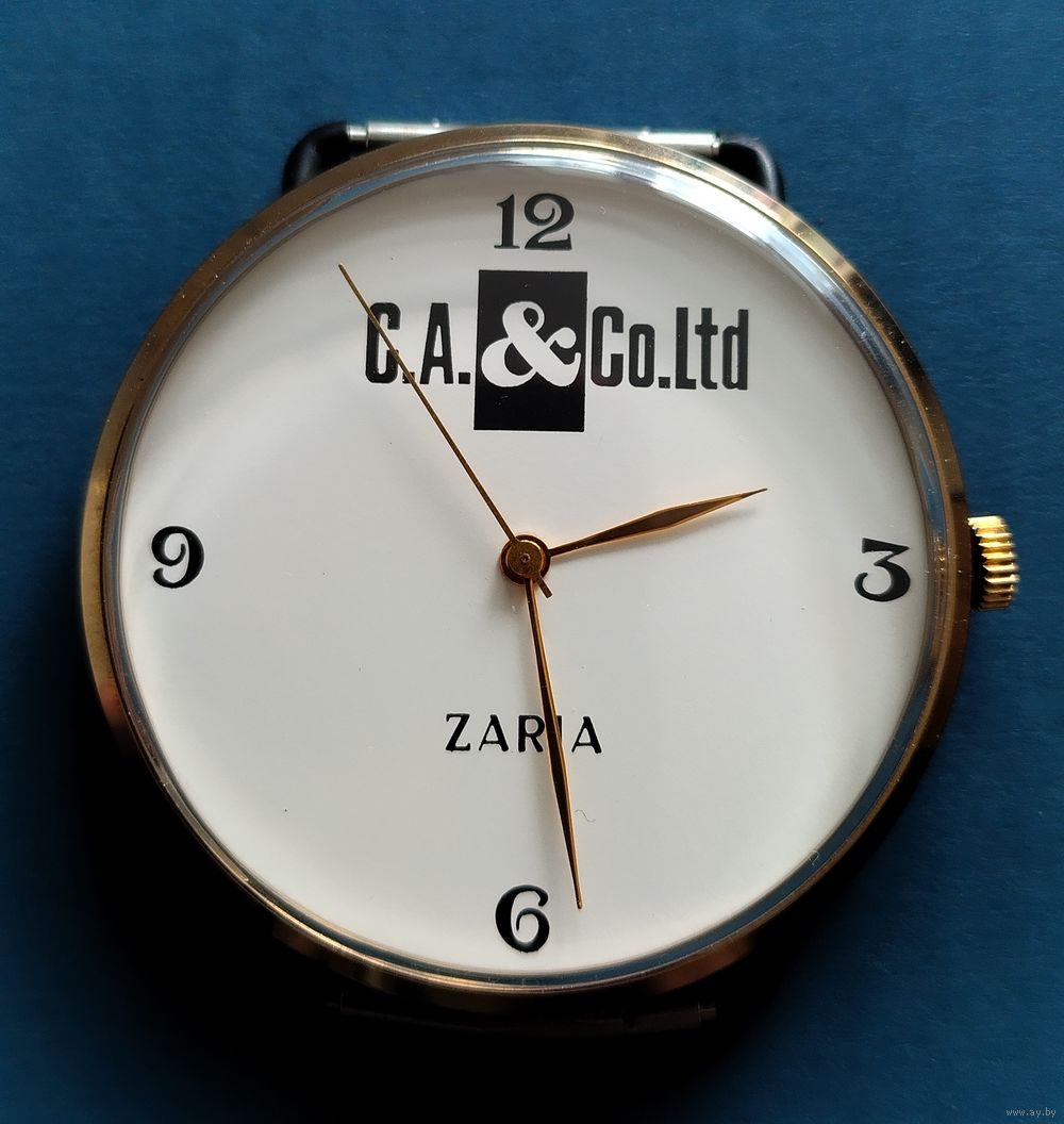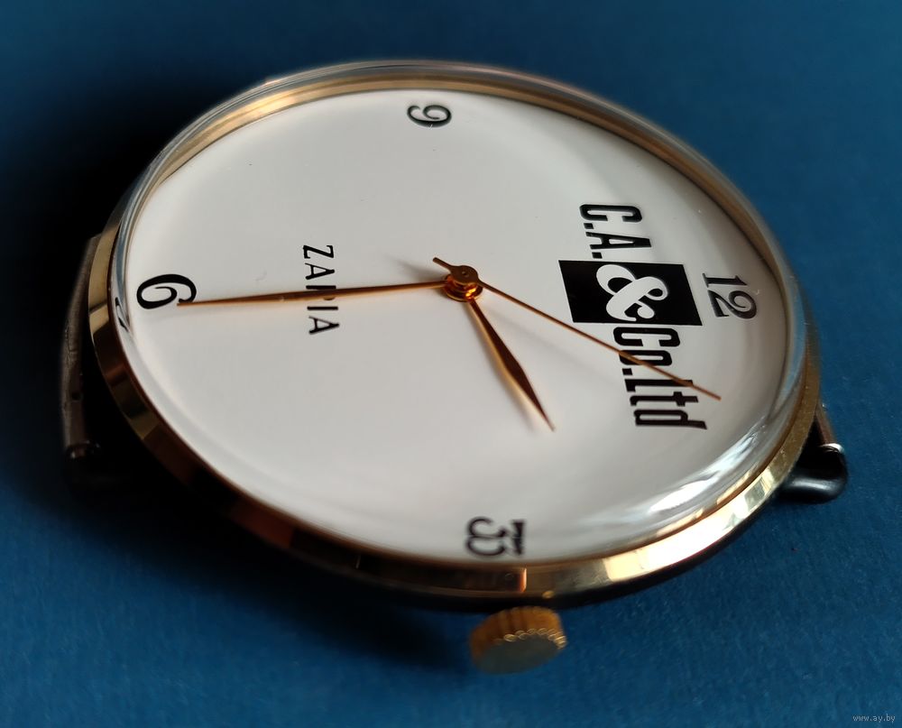 Брендирование: Помимо названия марки «ZARIA», на циферблате нанесен крупный логотип компании «C.A. & Co. Ltd». Подобные часы часто выпускались в качестве корпоративных подарков или сувенирной продукции для иностранных партнеров.