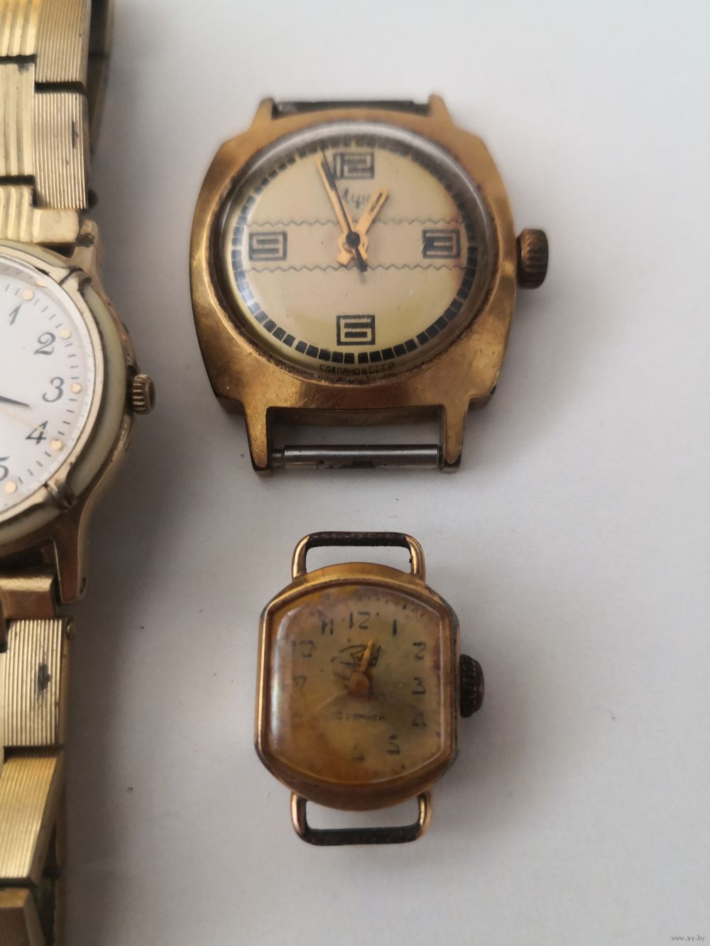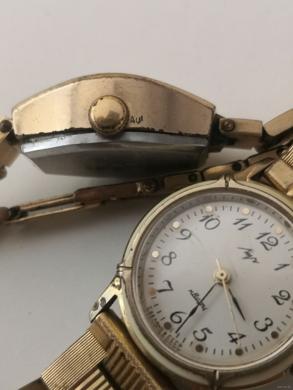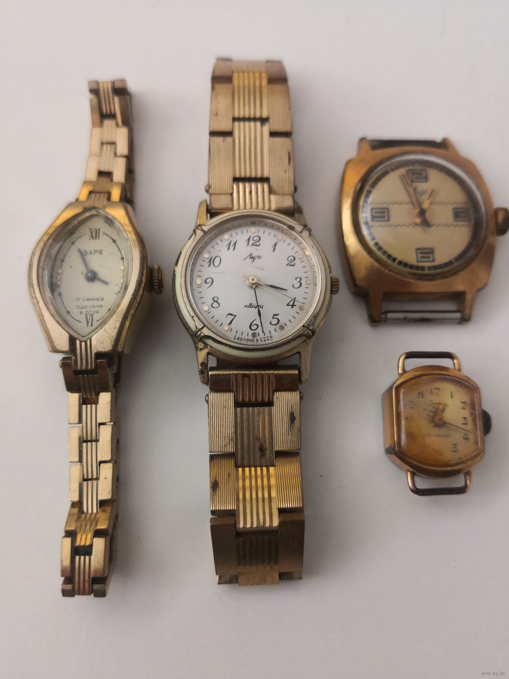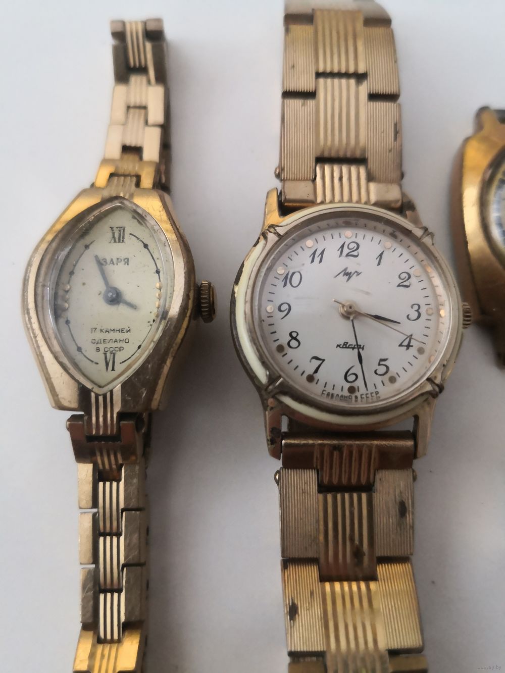 Часы женские позолоченные СССР. Луч кварц Au с позолоченным браслетом . .Заря АU12.5,, Луч Au10,, Заря Au1 с позолоченным браслетом .