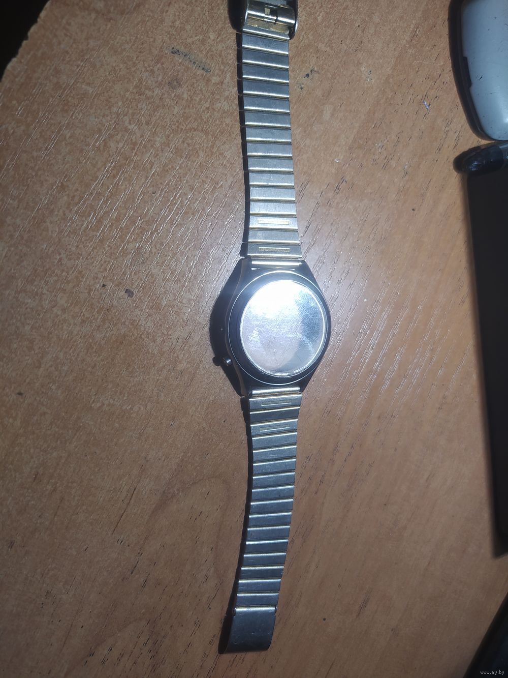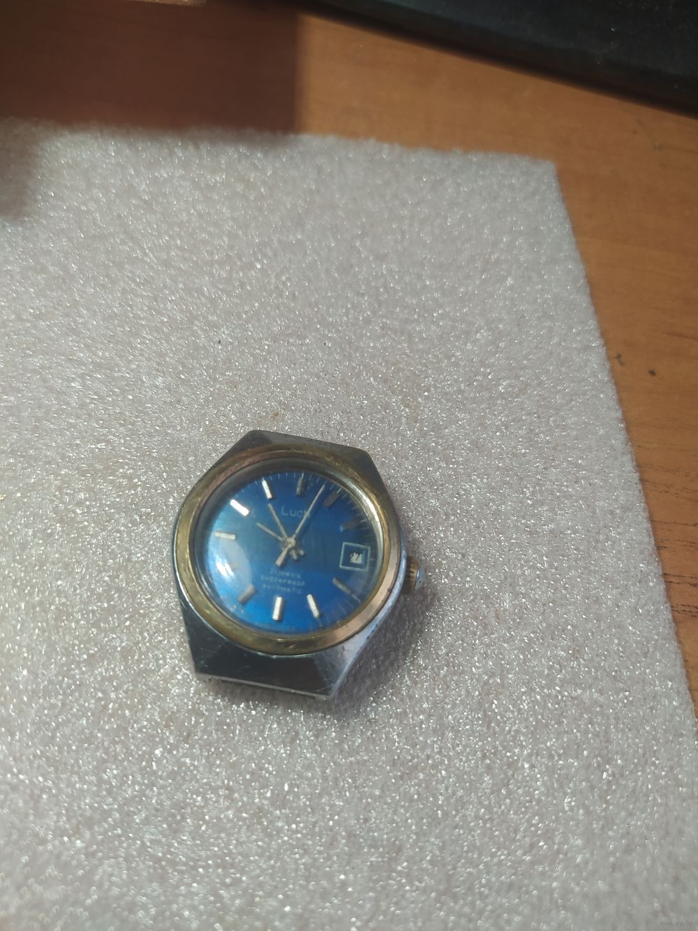 Часы идут. Могут останавливаются. Не обслужены. Золотой ободок. Есть потертость
