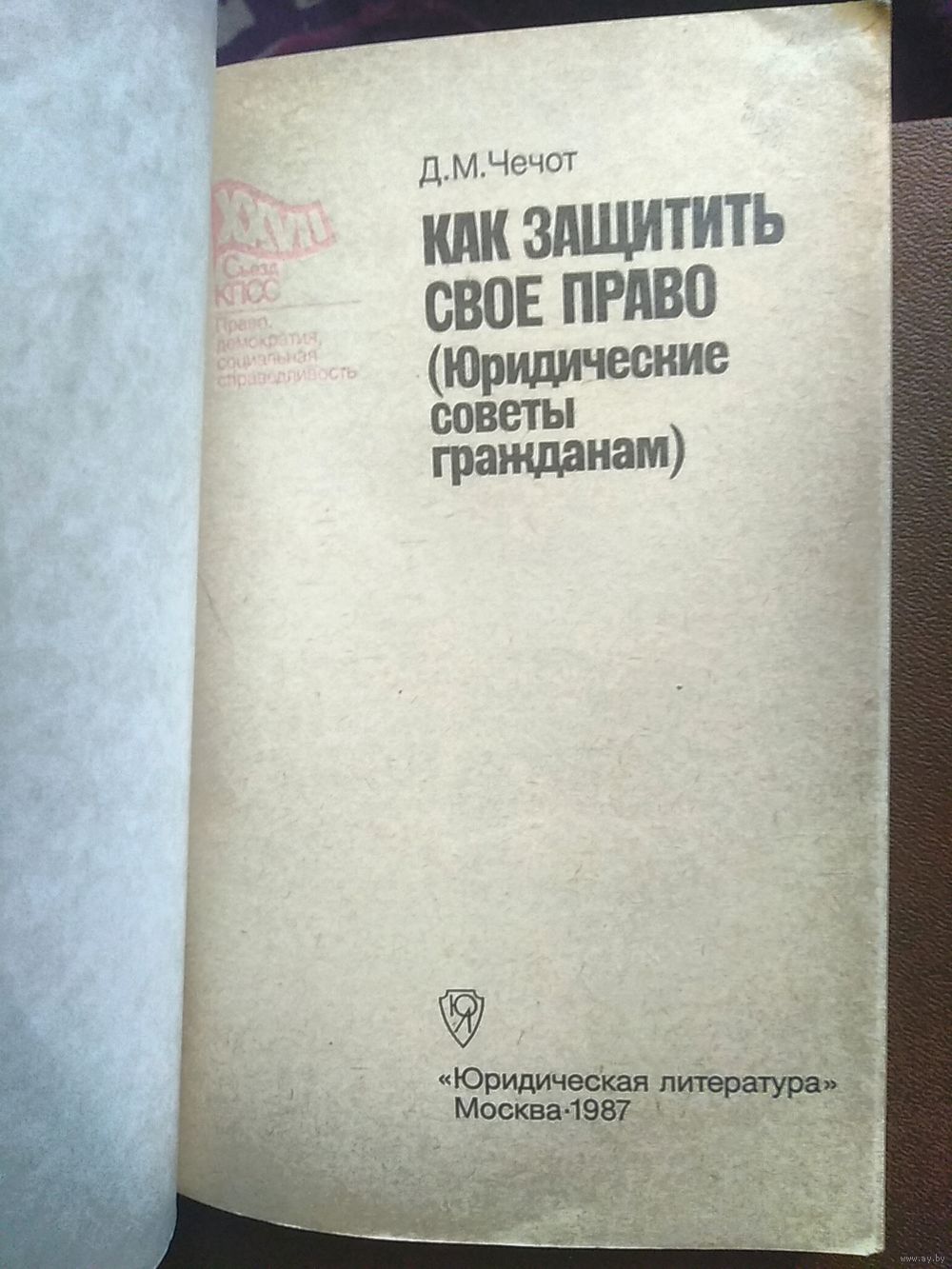 Чечот, Как защитить свое право. Юридические советы, 1987
