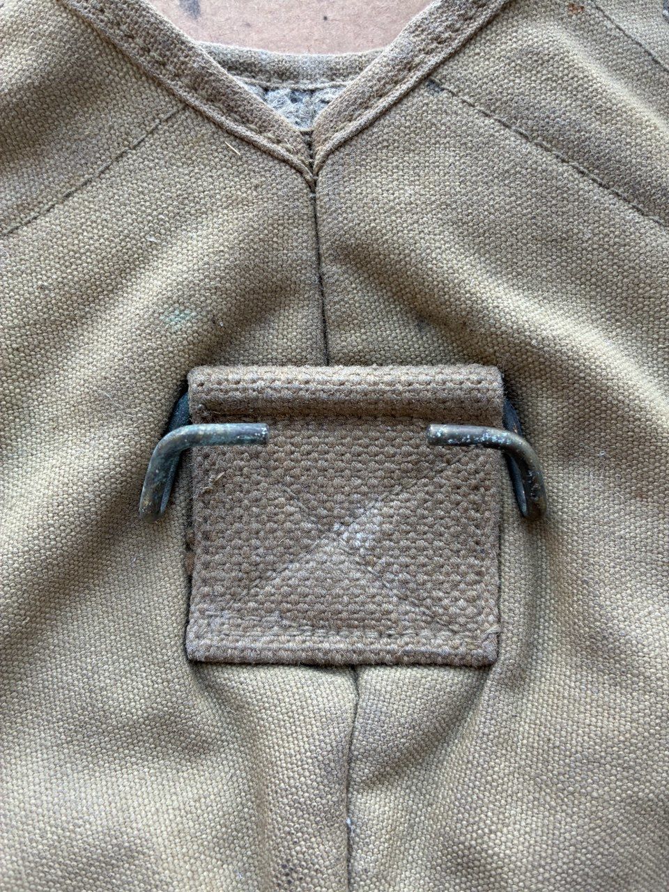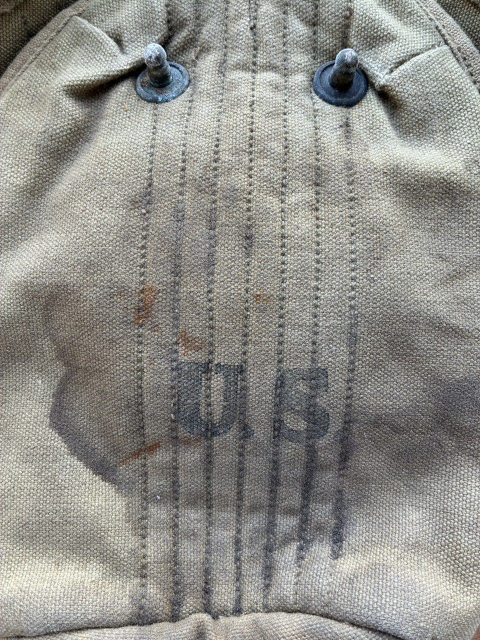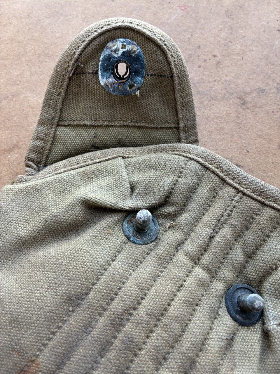 Обе кнопки-пуговицы на клапанах рабочие. Отлично читается чернильная маркировка US. Чехол из брезента хаки цвета.