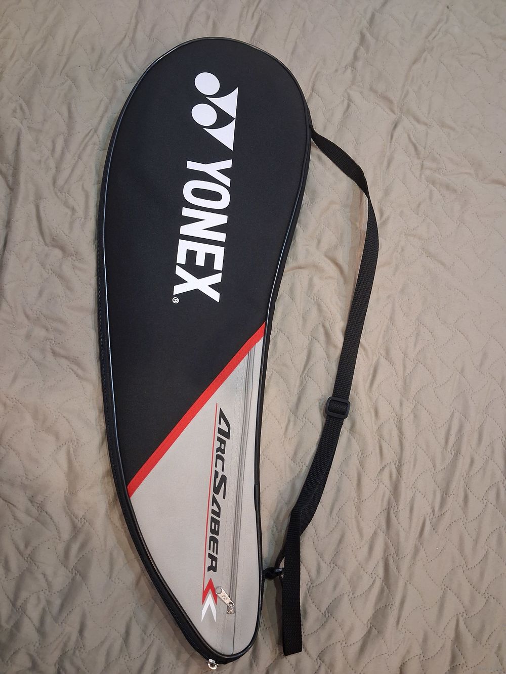Чехол фирменный Yonex для бадминтонной ракетки, с дополнительным карманчиком (для мелочей), состояние - как новое. Ракетка полностью вмещается в чехол.