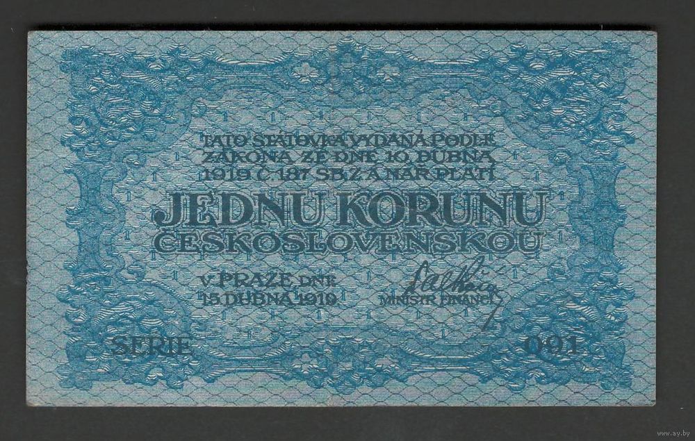 Чехословакия 1 крона 1919 года. Тип P-6а. Состояние XF