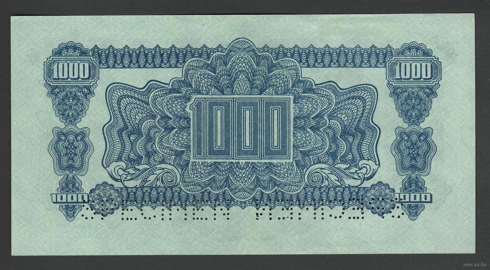 Чехословакия 1000 крон 1944 года. Перфорация. Тип Р-50. Состояние аUNC