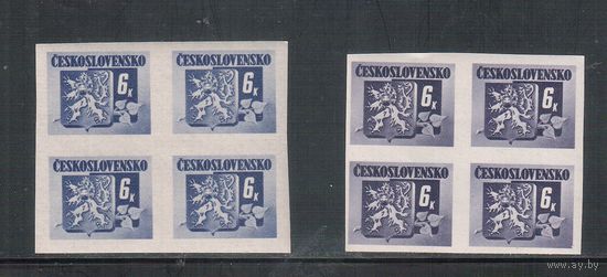 Чехословакия-1945,(Мих.422) ** , Стандарт, Гербы, кв.бл., оттенки
