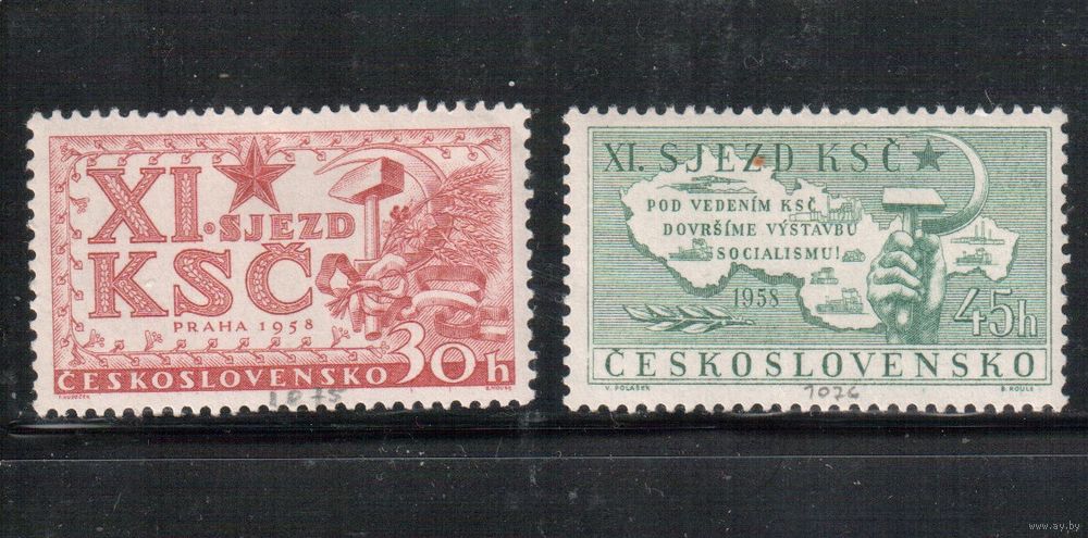 Чехословакия-1958,(Мих.1075-1076) ** , Съезд Компартии