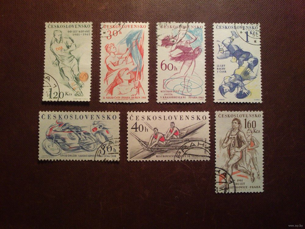 Чехословакия 1961 г.Спорт 61.Гашеная c клеем.Used.Три марки без клея.