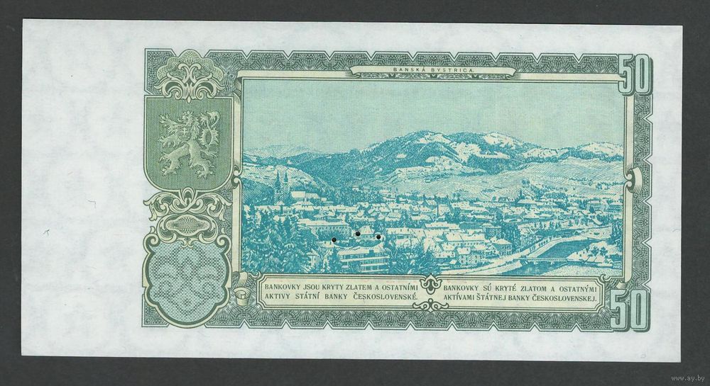 Чехословакия 50 крон 1953 года. Серия ВЕ. Перфорация 3 точки. Тип Р-85а. Состояние UNC!
