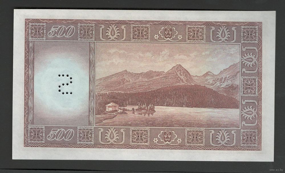 Чехословакия 500 крон 1946 года. Перфорация S. Тип Р-73. Состояние UNC
