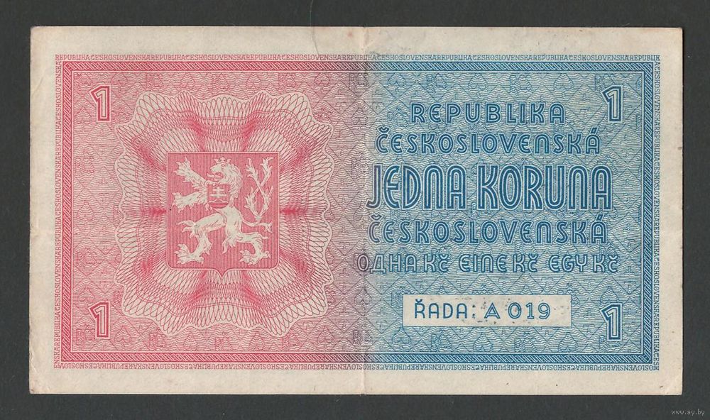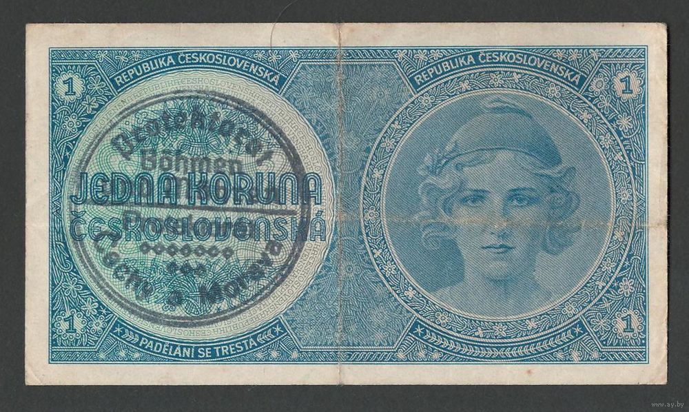 Чехословакия Богемия и Моравия 1 крона 1939 года. Без перфорации. Тип Р-1. Состояние VF