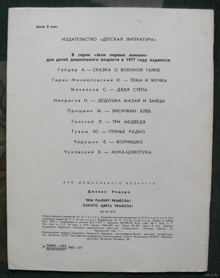 Книга Джанни Родари "Чем пахнут ремёсла? Какого цвета ремёсла?" посвящена многообразию профессий и тому, как они выглядят. В каждом стихотворении автор рассказывает о запахах, связанных с различными профессиями: столяра, который пахнет деревом, рыбака, чей труд ассоциируется с запахом рыбы, доктора, окружённого ароматами лекарств, и кондитера, чья работа пахнет свежей выпечкой. Далее автор затрагивает и другие профессии, подчёркивая, что безделье никак не пахнет.Эта книга учит юных читателей уважать труд и призывает найти дело по душе. Родари мастерски описывает, чем пахнут ремёсла, и какого цвета они могут быть, создавая яркие образы и ассоциации. Каждое стихотворение — это не только рассказ о профессии, но и приглашение задуматься о значении труда в жизни человека. Книга станет отличным инструментом для родителей и педагогов, стремящихся привить детям уважение к труду и помочь им в выборе будущей профессии. Благодаря ярким описаниям и увлекательным сюжетам, юные читатели смогут лучше понять, чем пахнут ремёсла и какого цвета они бывают, что поможет им в поиске своего призвания.