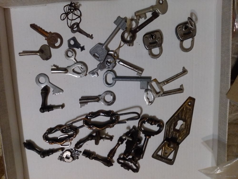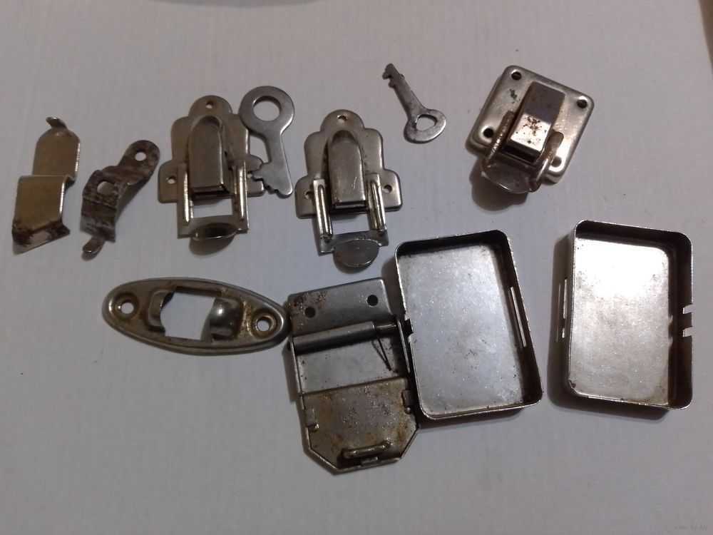 элементы от старых чемоданов, мебельные и другие ключи, 2 чемоданных замка с ключами (один точно рабочий). подойдёт для рестоврации чемоданов, мебели и т.п.