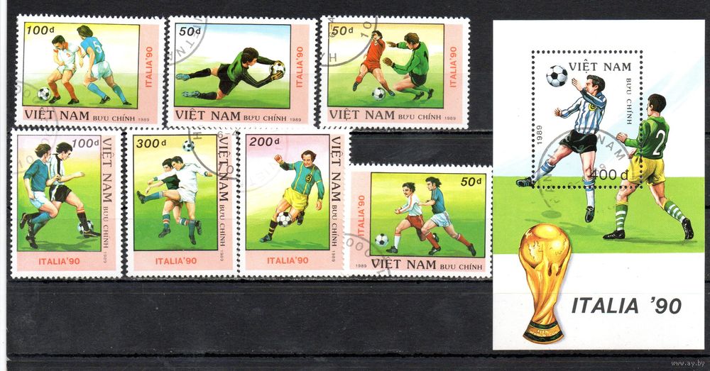 Чемпионат мира по футболу в Италии Вьетнам 1989 год серия из 7 марок и 1 блока