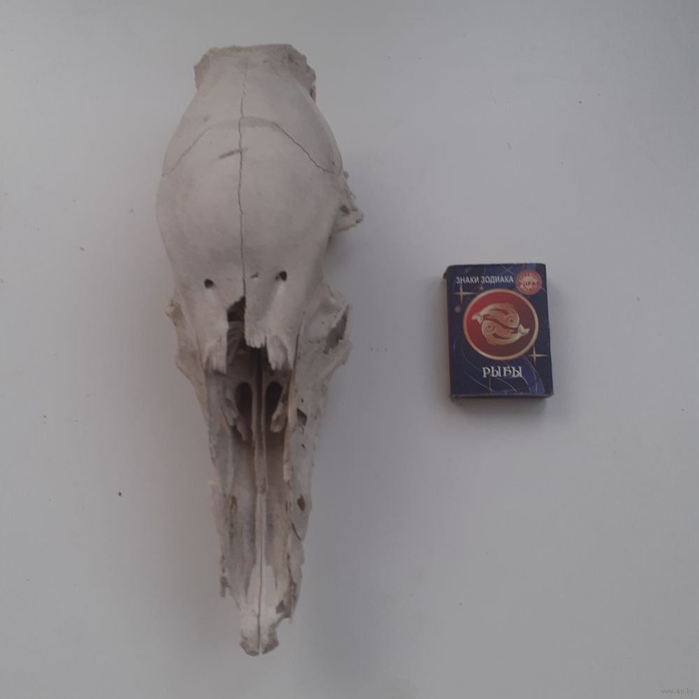 Череп без нижней челюсти ,предположительно лисы , найден в лесу и прлежал года три в терариуме.Рзмеры ДхШхВ:22х7х7 см. При желании купить, забрать можно ст. метро Пушкинская .Почтой не отправляю, сообщения не смотрю.