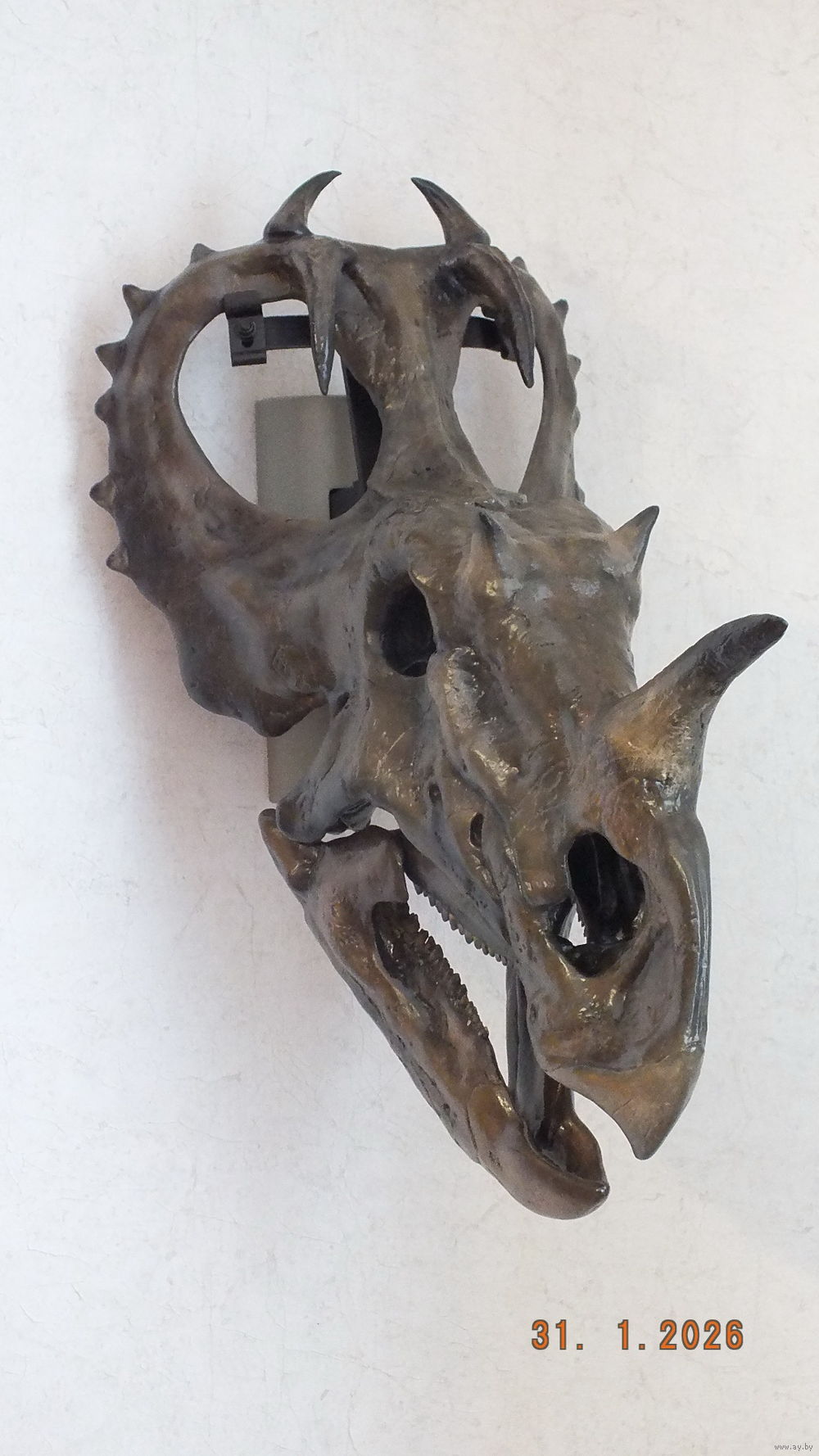 Композит, металл (кронштейн), художественная окраска, тонировка, вес около 5 кг. Авторская работа.