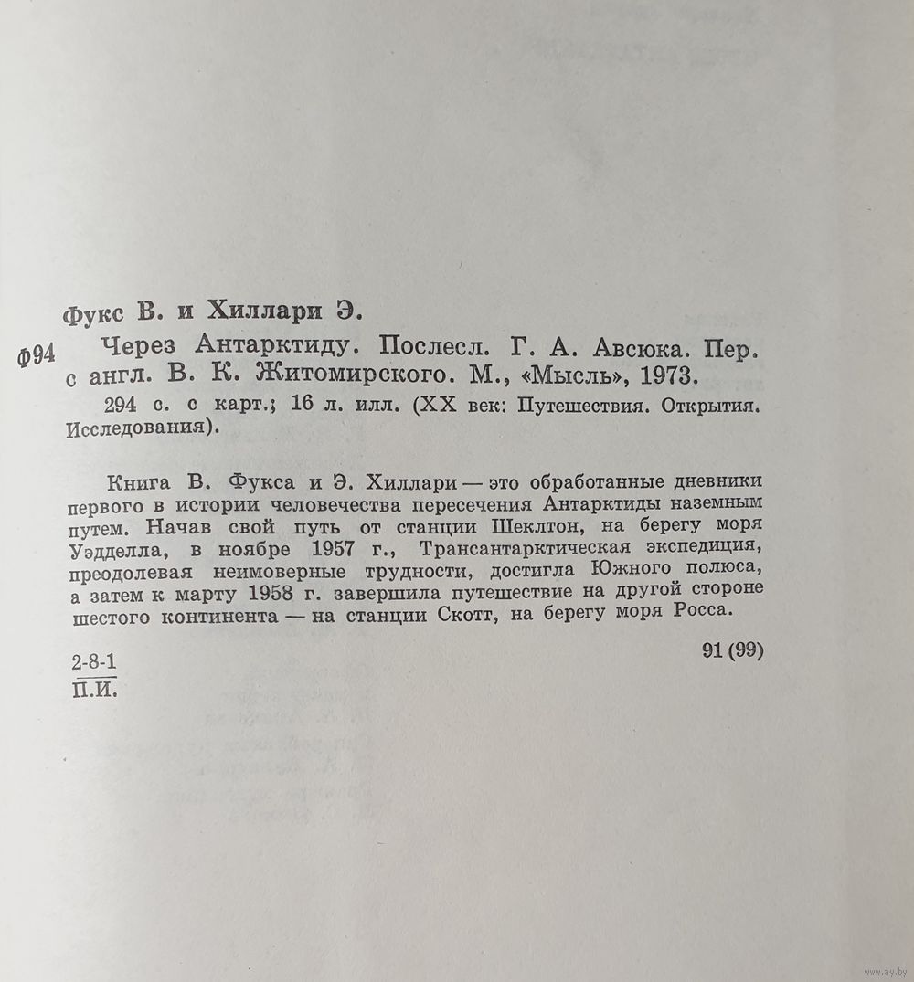 Книга В.Фукса и Э.Хиллари - это обработанные дневники первого в истории человечества пересечения Антарктиды наземным путем. Начав свой путь от станции Шеклтон, на берегу моря Уэддела, в ноябре 1957 г., Трансантарктическая экспедиция, преодолевая неимоверные трудности, достигла Южного полюса, а затем к марту 1958 г. завершила путешествие на другой стороне шестого континента - на станции Скотт, на берегу моря Росса.