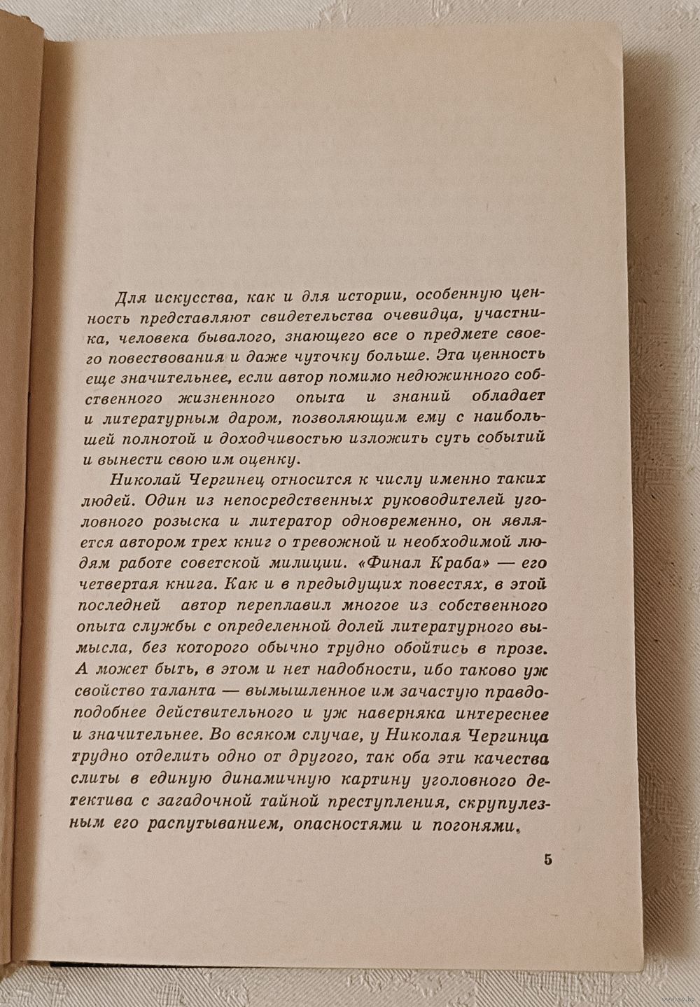Чергинец Николай. Финал Краба. — Мн.: Беларусь, 1979.-208 с., ил., твёрдый переплёт, стандартный формат.