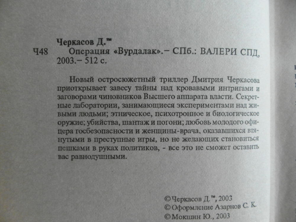 Новый остросюжетный триллер Дмитрия Черкасова приоткрывает завесу тайны над кровавыми интригами и заговорами чиновников Высшего аппарата власти. Секретные лаборатории, занимающиеся экспериментами над живыми людьми: этническое, психотронное и биологическое оружие: убийства, шантаж и погони: любовь молодого офицера госбезопасности и женщины-врача, оказавшихся втянутыми в преступные игры, но не желающих становиться пешками в руках политиков, - все это не сможет оставить вас равнодушными.