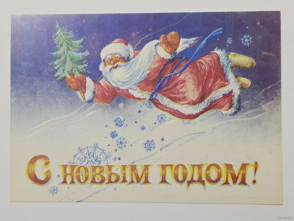 Черкасов С Новым годом 1992 малотиражная чистая открытка СССР (БССР, Беларусь)