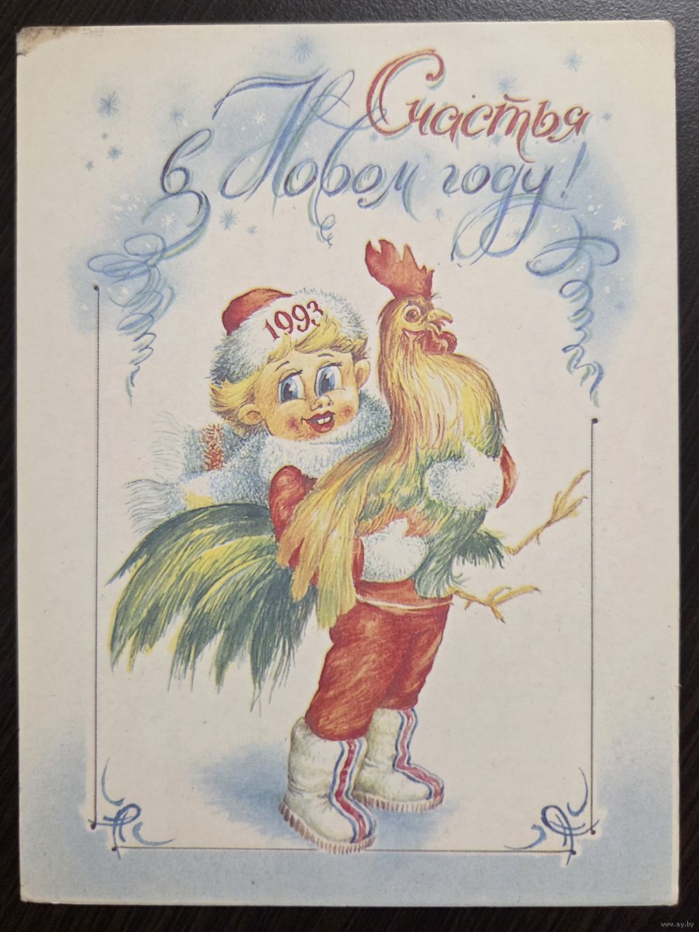 Черкасов Счастья в Новом году годовик 1992 малотиражная чистая открытка Беларусь