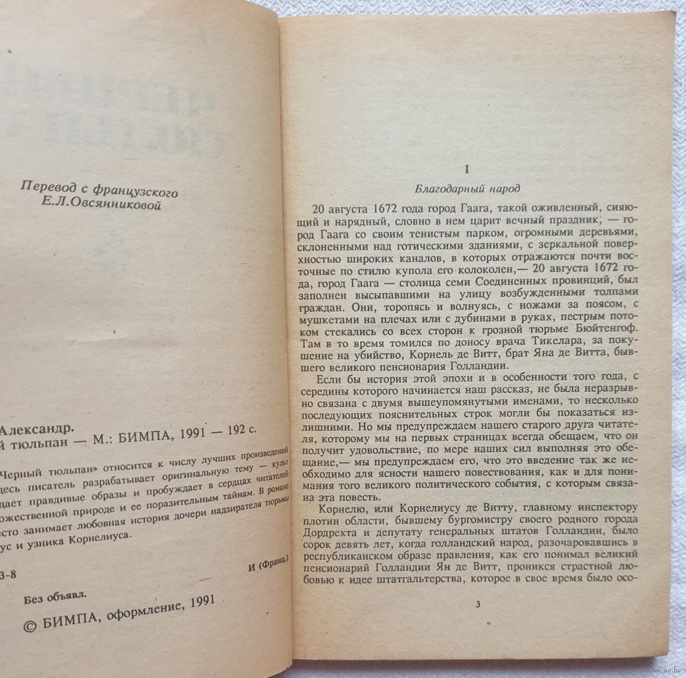 Роман ЧЕРНЫЙ ТЮЛЬПАН относится к числу лучших произведений А.Дюма. Здесь писатель разрабатывает оригинальную тему - культ цветов, создает правдивые образы и пробуждает в сердцах читателей любовь к божественной природе и ее поразительным тайнам. В романе большое место занимает любовная история дочери надзирателя тюрьмы Розы Грифус и узника Корнелиуса.