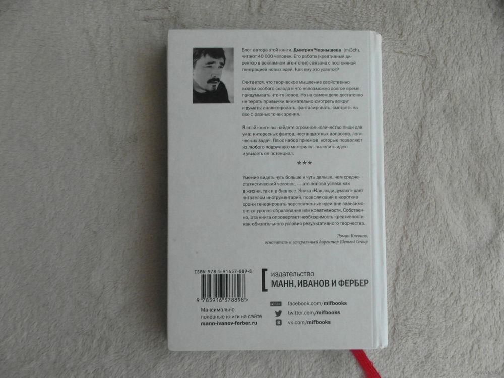 В словосочетании «творческое мышление» главное слово – мышление. Оно само по себе творческий акт. Все новое, интересное, сложное – пища для ума, и пищу эту окружающий мир поставляет в избытке. А переработать материал в новые идеи можно, используя приемы из этой книги, написанной известным российским блогером Дмитрием Чернышевым, работа которого – креативный директор в рекламном агентстве – почти полтора десятка лет связана с ежедневной генерацией идей.