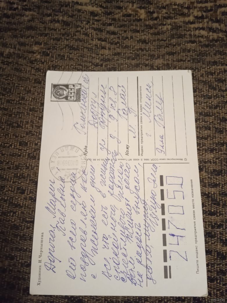 Чернышева И., 8 Марта; 1986, подписанна.прошедшая почту.