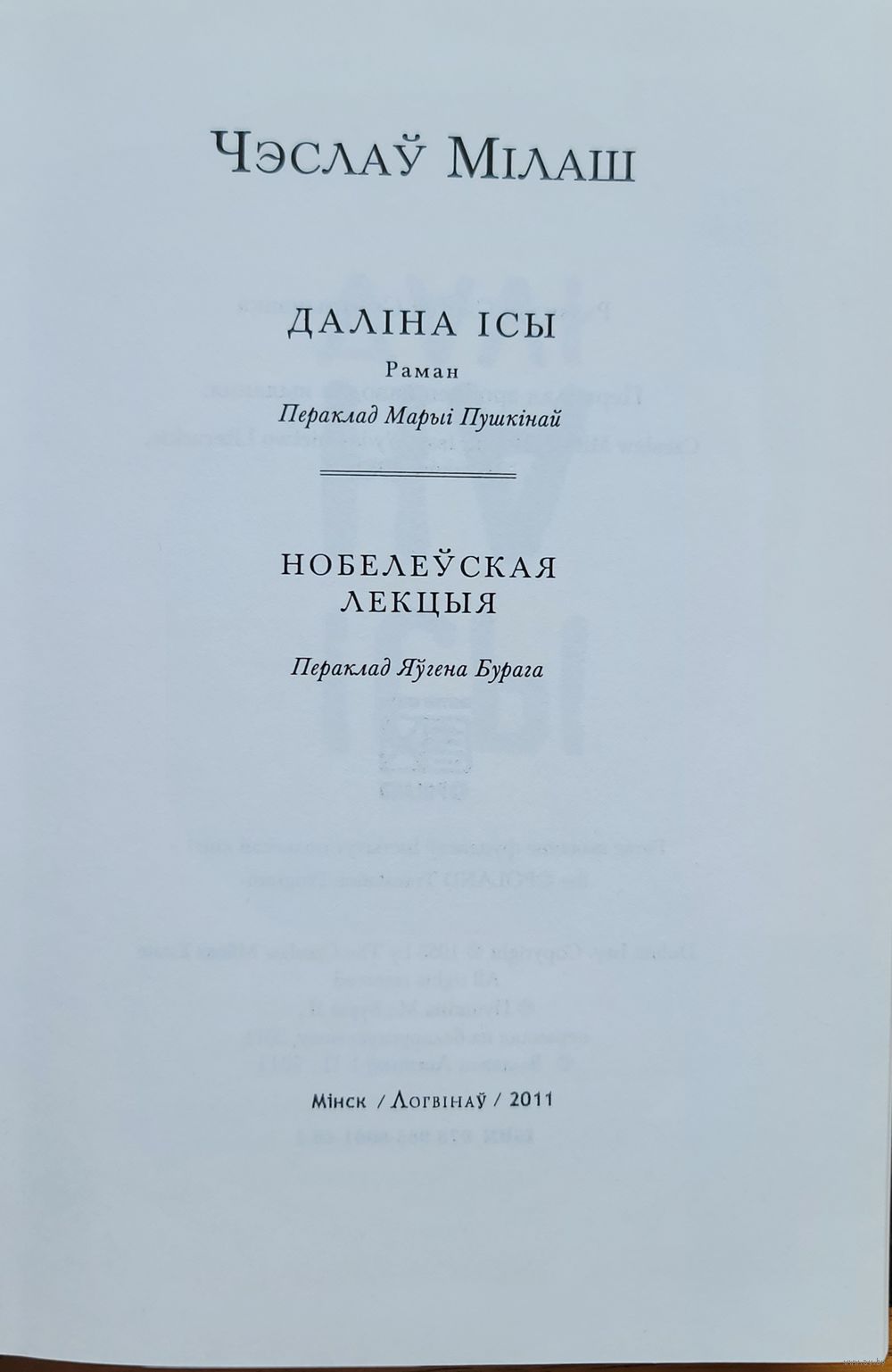 Чэслаў Мілаш Мiлаш Проза Даліна Ісы Нобелеўская лекцыя
