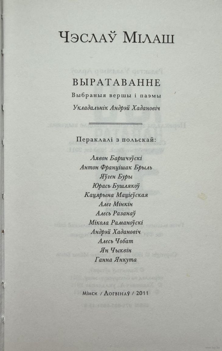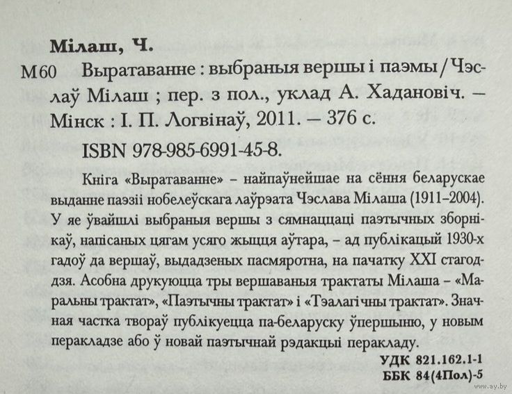 Чэслаў Мілаш Мiлаш Выратаванне Паэзія Паэзiя