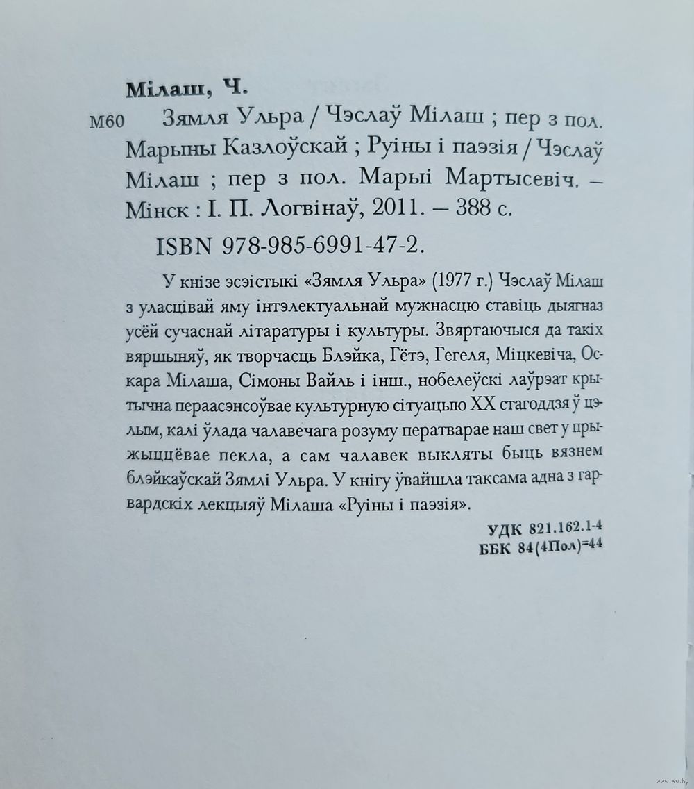 Чэслаў Мілаш Мiлаш Зямля Ультра Эсе