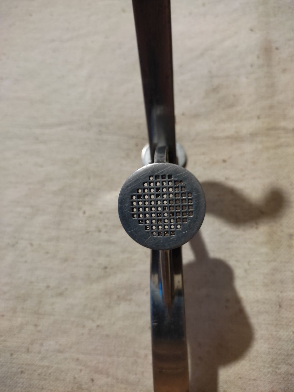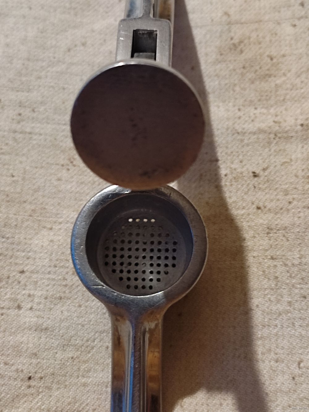 Чесночница СССР, алюминий. Длина - 15,5 см , вес - 75 гр. Отличное состояние ( разобрана , очень чисто вымыта и собрана - см. фото 9 ). Высылаю : Белпочта , Европочта.