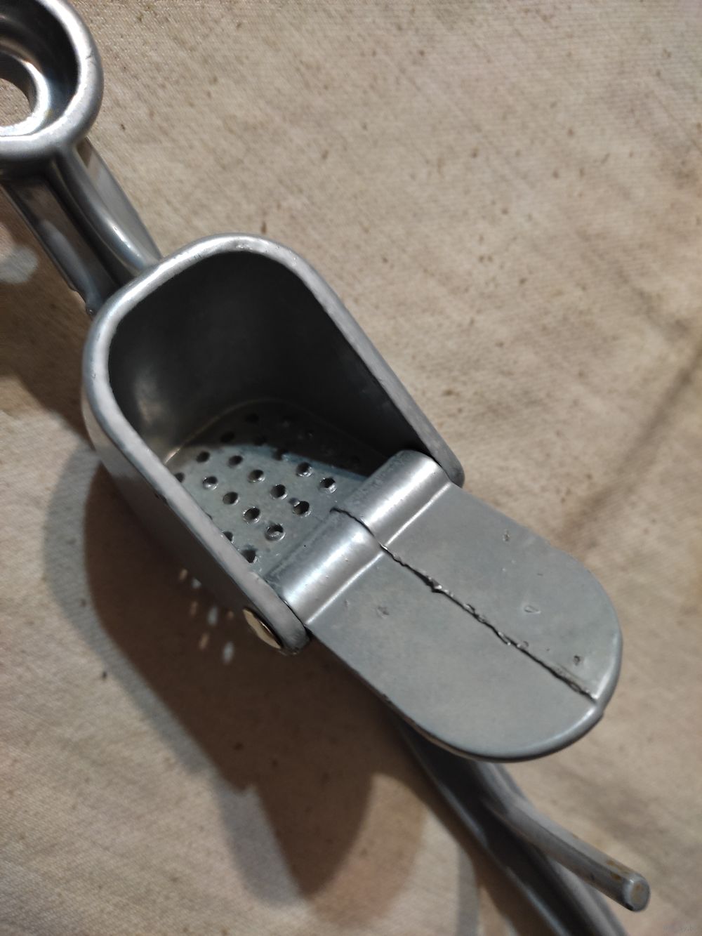 Чесночница , толстый алюминий. Клейм нет. Длина - 18 см , вес - 152 гр. Высылаю : Белпочта , Европочта .