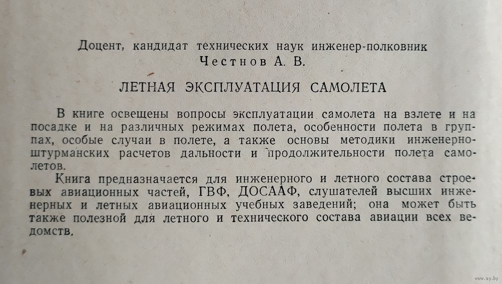 Честнов А. В. Летная эксплуатация самолета. М.: Военное издательство, 1962г., 248 с., илл., графики, таблицы. Твёрдый переплёт, обычный формат. Тираж 8 000 экз.