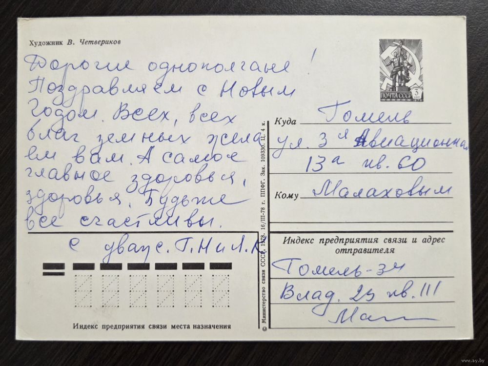 Четвериков С Новым годом 1978 подписанная открытка СССР