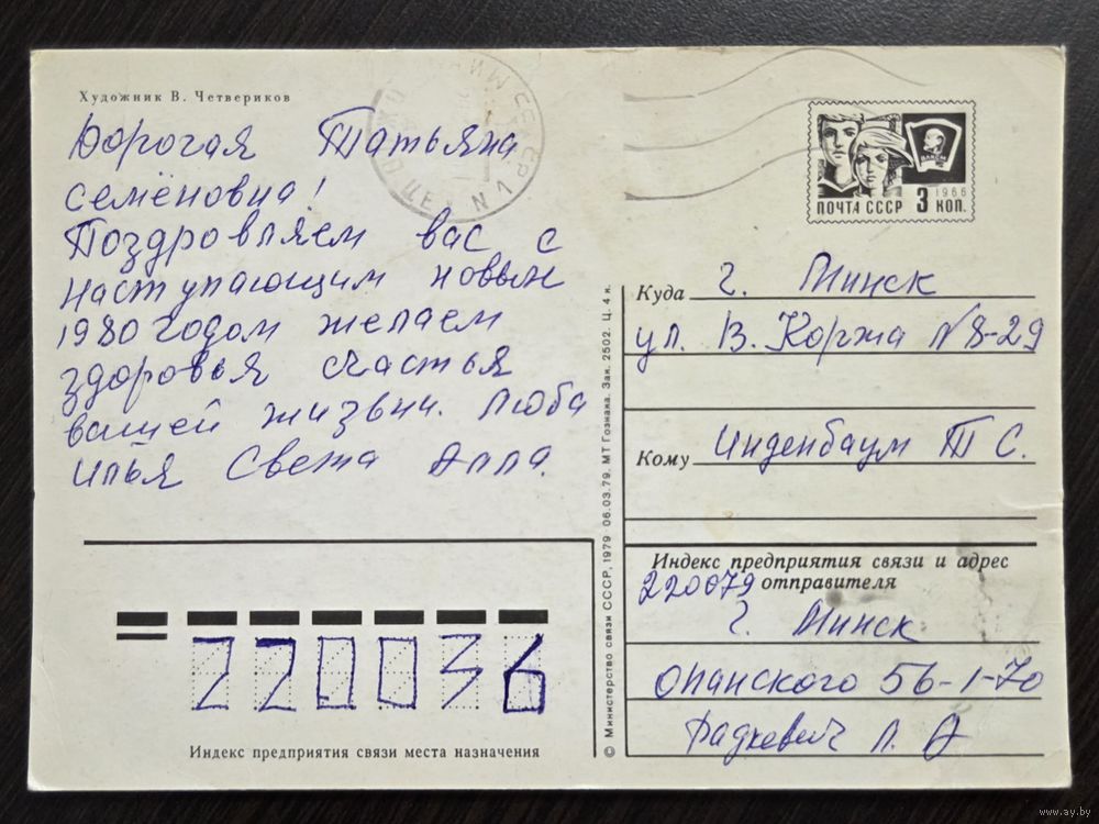 Четвериков С Новым годом 1979 подписанная открытка СССР