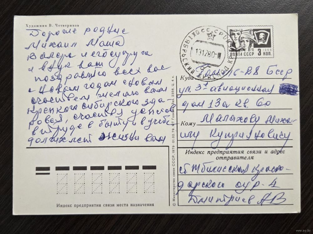 Четвериков С Новым годом 1979 подписанная открытка СССР