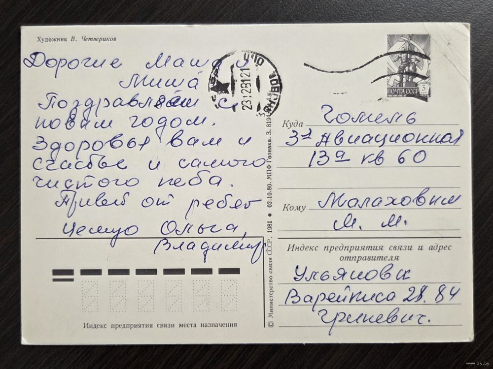 Четвериков С Новым годом 1981 подписанная открытка СССР