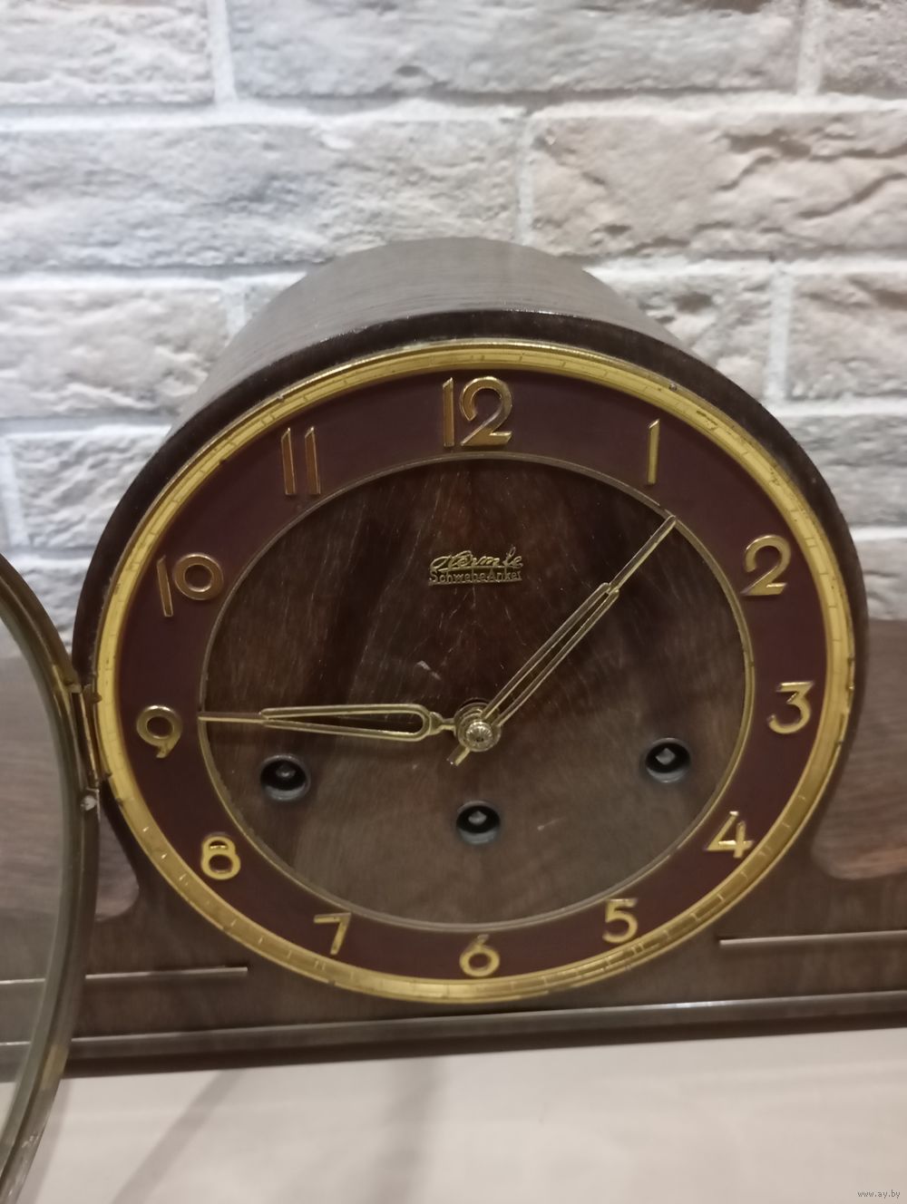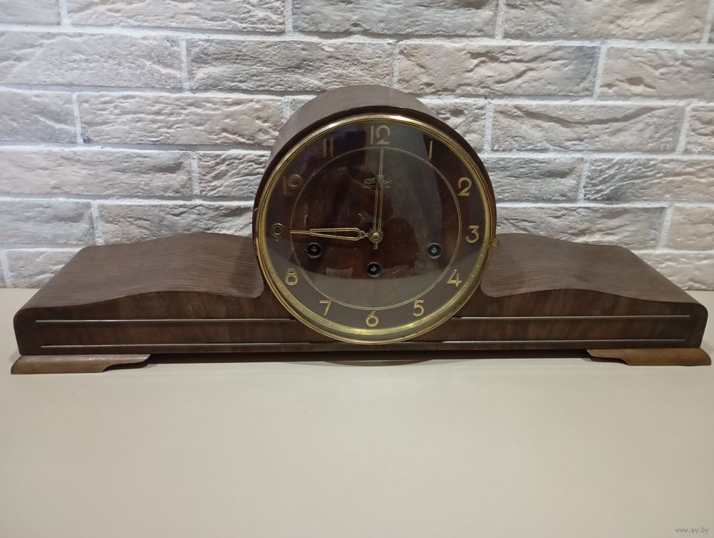 Четвертные каминные часы.Хермле. Германия. 1930 годы. Плавающий баланс боя. В идеальном рабочем состоянии. Оригинальный ключ. Ширина 67 высота 20.