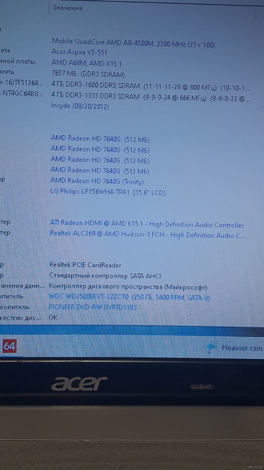 | Видеокарта | 512 Мб, AMD Radeon HD 7640G |