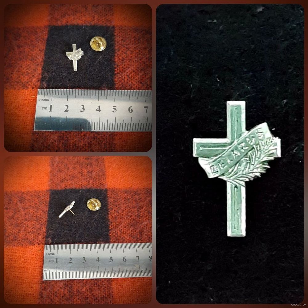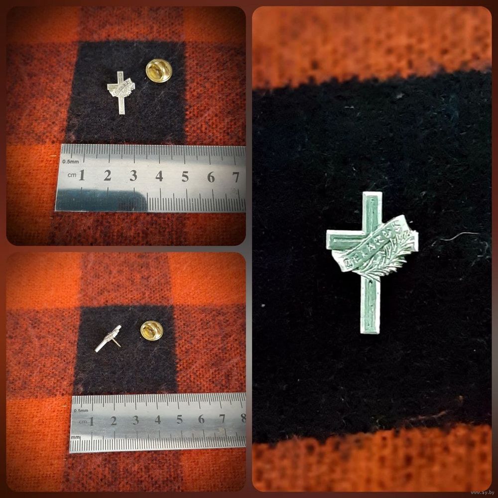 Четырехконечный крест с надписью Беларусь, 2002 года выпуска, крепится на лацкане пиджака.