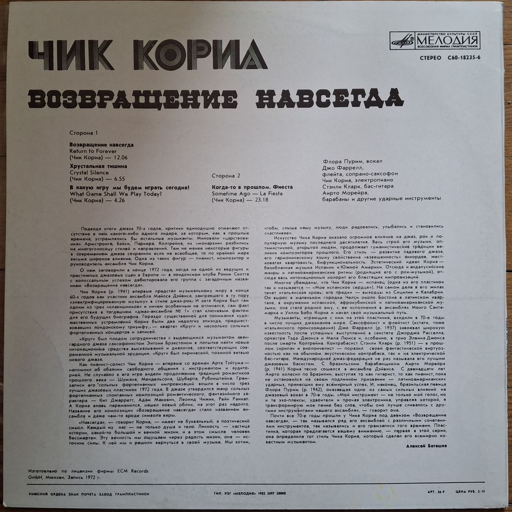 ЧИК КОРИА - ВОЗВРАЩЕНИЕ НАВСЕГДА