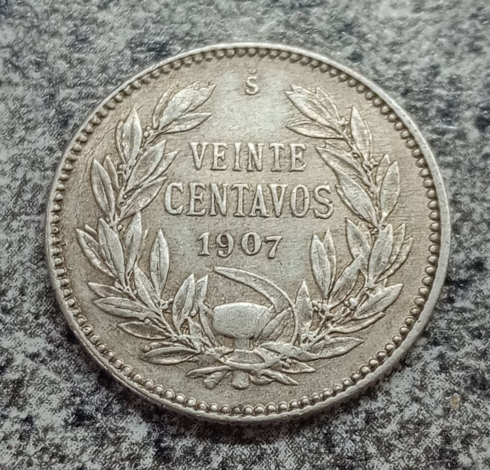 Чили 20 сентаво 1907 год серебро