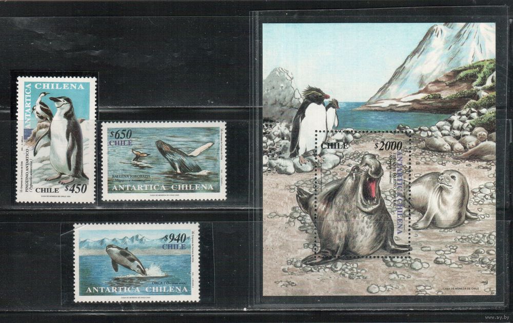 Чили-2000,(Мих.1960-1962, Бл.47) ** , Морская фауна, Антарктида(полная серия)