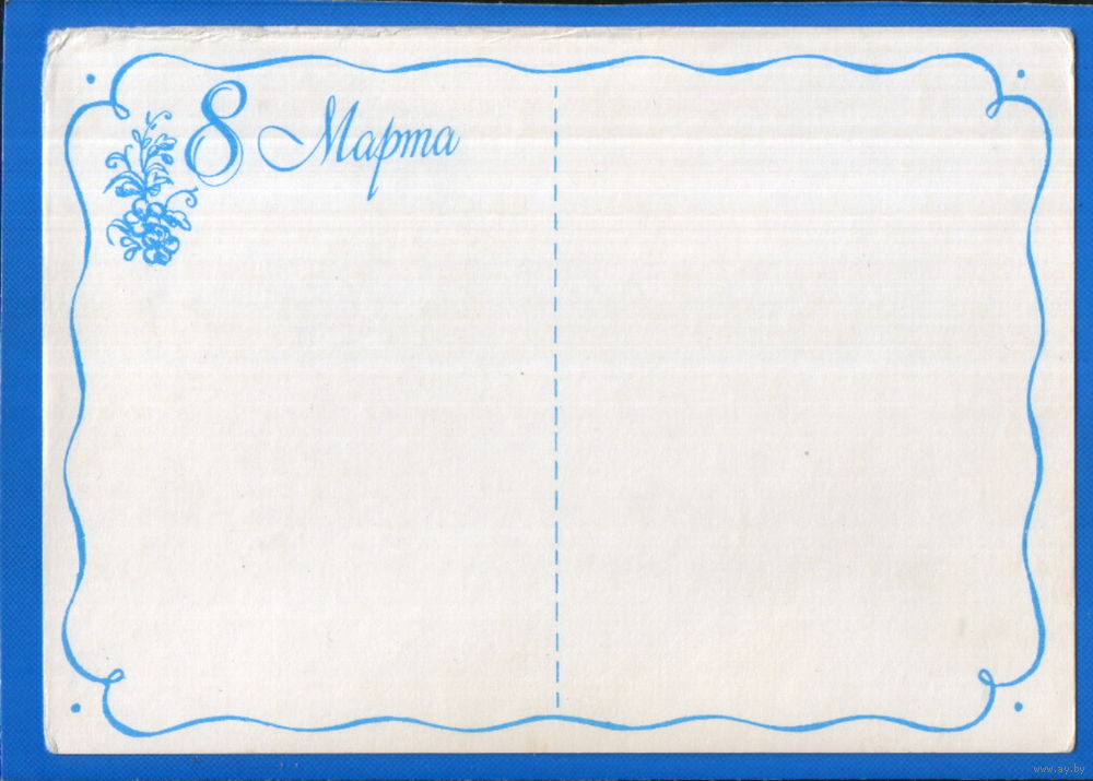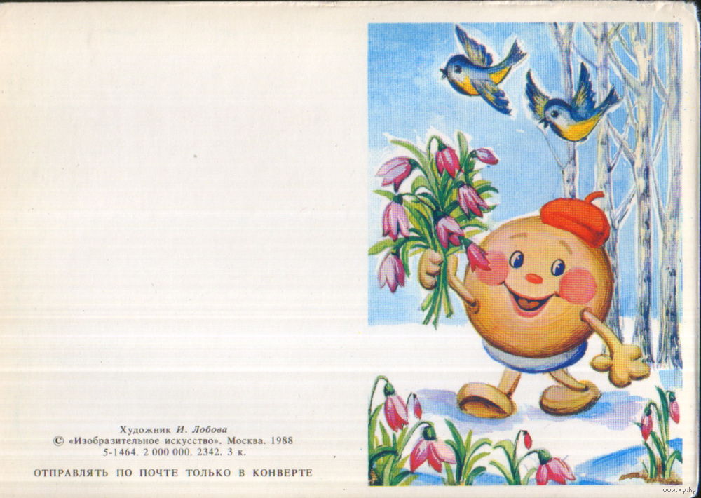 Чистая мини-открытка без перегиба 1988г. "8 Марта. Колобок" худ. И. Лобова