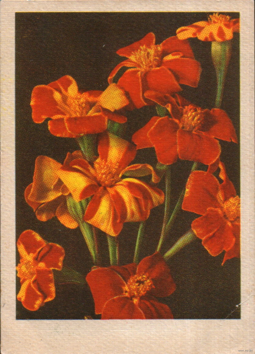 Чистая открытка 1960г. Латвийская ССР "Бархатцы" фото К. Мелбардис