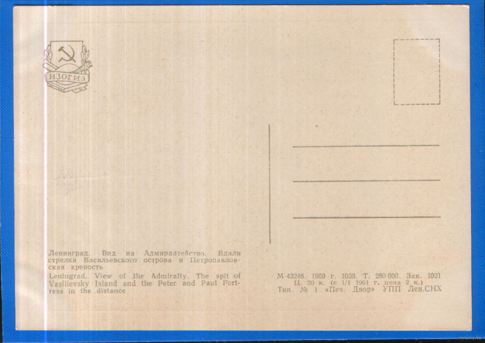 Чистая открытка 1960г. "Ленинград. Вид на Адмиралтейство"