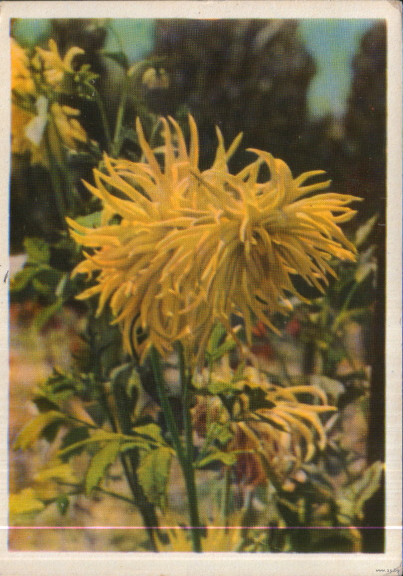 Чистая открытка 1963г. "Георгины" худ. М. Савин