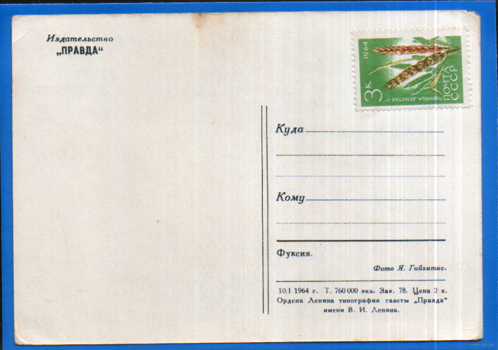 Чистая открытка 1964г. "Фуксия" фото Я. Гайлитис