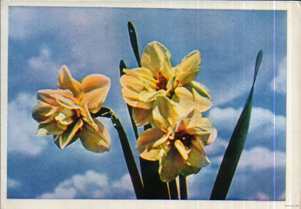 Чистая открытка 1965г. "Нарциссы" фото Е. Игнатович
